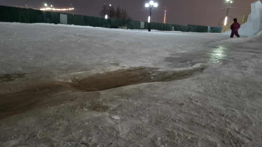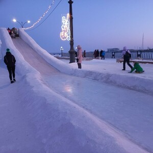 «Удивила горка Ангара на месте, где раньше стоял всегда каток. Этот закуток какой-то тёмный, не хватает подсветки, от этого ощущение, что катаешься на каких-то задворках. Плюс скат в сторону Ленина очень небезопасный. Там прям дыра во льду. При мне мальчик на ледянке попал в неё, перевернулся и ударился головой. Выглядело это очень страшно. Но, видимо, шапка смягчила удар, и он сильно не пострадал. А ещё скат для чего-то заканчивается барьером из снега. Выглядит это не очень эстетично, да ещё и страшно в него врезаться. У меня ребёнок ногами и руками тормозила, чтобы до него не доехать. Мы были вечером 1 января, но сегодня ситуация с этой ямой совсем не изменилась, мы снова приехали на площадь и картина такая же», – рассказала благовещенка Татьяна.