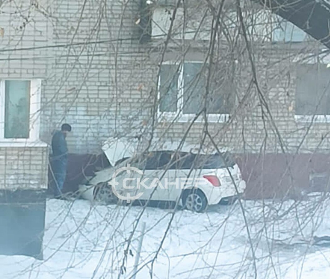 Утром 24 января на пересечении улиц Ленина и Мухина столкнулись кроссовер и легковой автомобиль. Последний пролетел перекресток, сбил пару кустов и воткнулся в жилой дом.