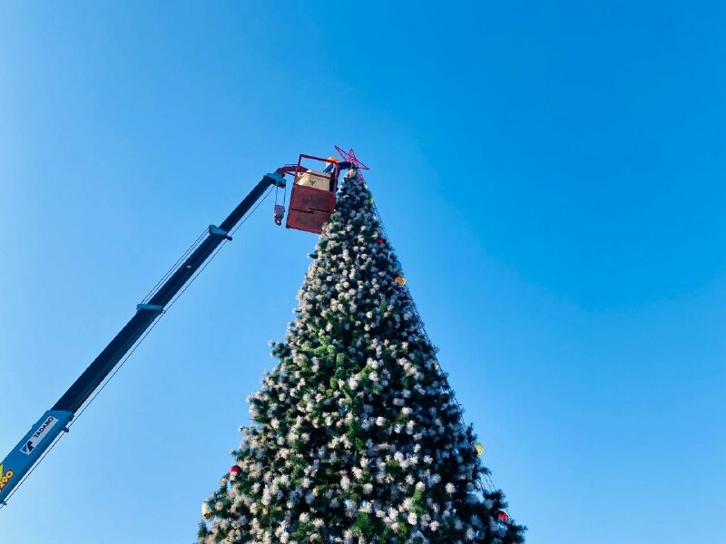 Ранее сообщалось, что новогодний городок украсили 14 ледовых фигур с подсветкой. Впервые площадь была украшена яркой иллюминацией в виде светящихся гирлянд. Ледяные горки украшены резьбой.
