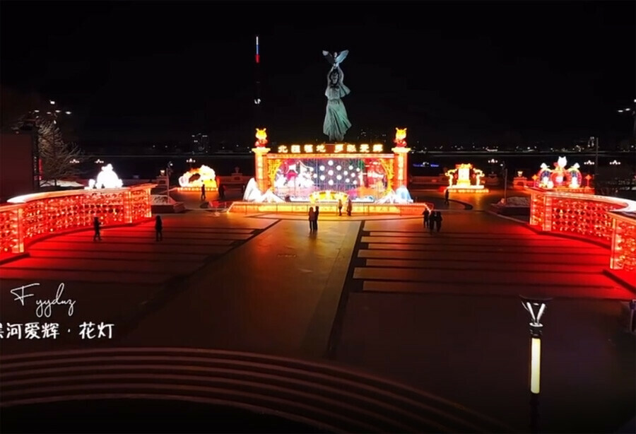 В Хэйхэ завершили установку праздничных декораций к китайскому Новому году. Сейчас по вечерам соседний с Благовещенском китайский город выглядит необыкновенно нарядно.