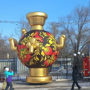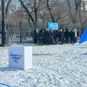 На набережной появились киоски. В них торгуют сувенирами, футболками и кепками с символикой соревнований, сушками и чаем, беляшами и многим другим. В одной из палаток регистрируют участников игры в снежки.