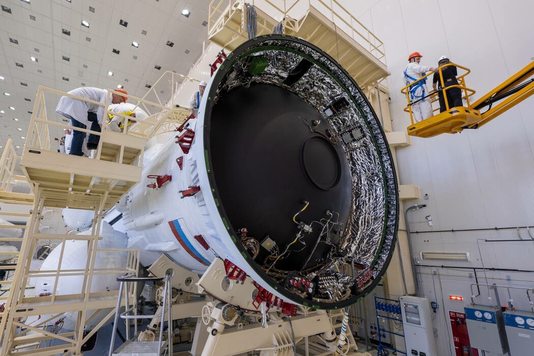 В настоящее время проводятся электрические проверки общей сборки и подготовка к перегрузке на транспортно-установочный агрегат для вывоза на стартовый комплекс, сообщили в Роскосмосе.