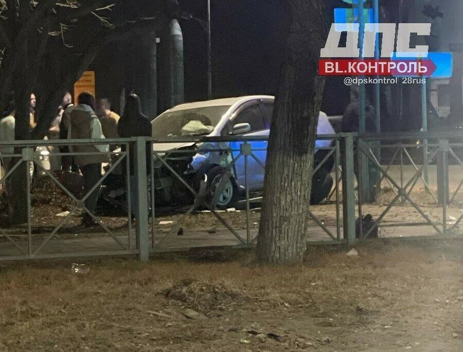 В Благовещенске в ночь на 15 апреля иномарку занесло, и неуправляемый автомобиль выбросило в сквер. Все произошло на перекрестке улиц Октябрьской и Калинина.