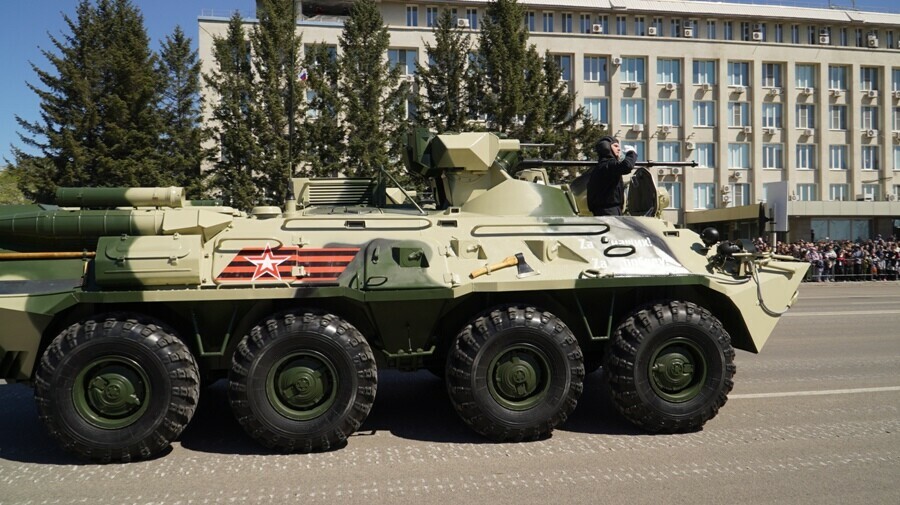 Войска Благовещенского гарнизона торжественным маршем прошли по Ленина. К торжественной церемонии присоединились 10 тысяч зрителей.