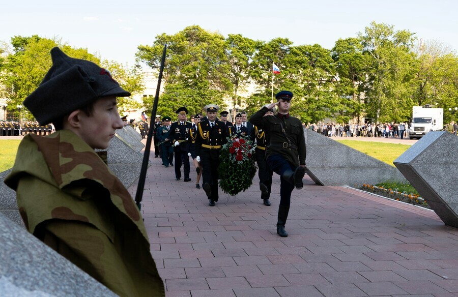 Минутой молчания почтили память воинов-амурцев, погибших при защите рубежей Отчизны, отстоявших свободу и независимость Родины, и возложили цветы к мемориалу воинам, павшим в годы Великой Отечественной войны. Затем торжественным маршем по площади Победы прошли сотрудники пограничного управления.