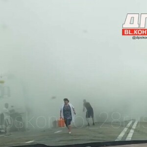 На кадрах с места происшествия видно, как вся проезжая часть после аварии оказалась скрыта густым дымом.