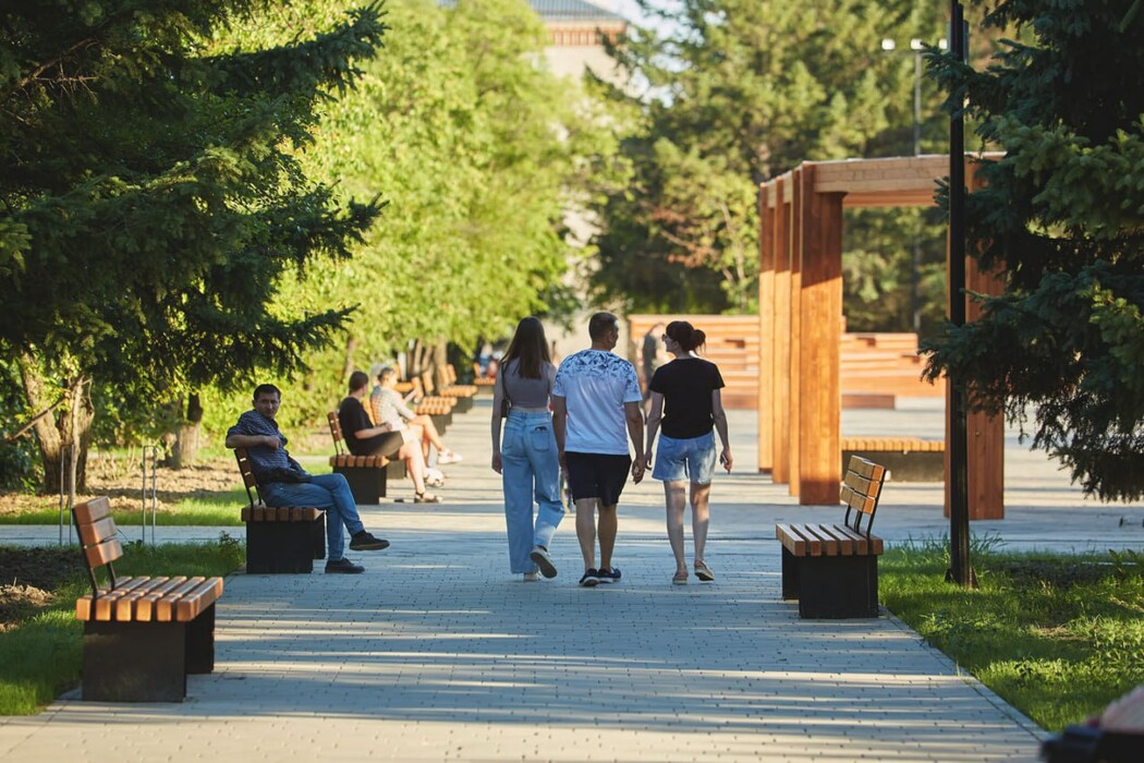 На площади обновили покрытие, оборудовали светодиодный фонтан, уличный кинотеатр, сцену, перголу, построили общественный туалет. Также будет зона для тихого отдыха – там поставили лавочки, высадили кустарники и цветущие деревья. Украсят площадь и три типа освещения: прожекторы, архитектурно-ландшафтная подсветка и уличные декоративные светильники. Сейчас здесь завершаются отделочные работы внутренних помещений сцены.