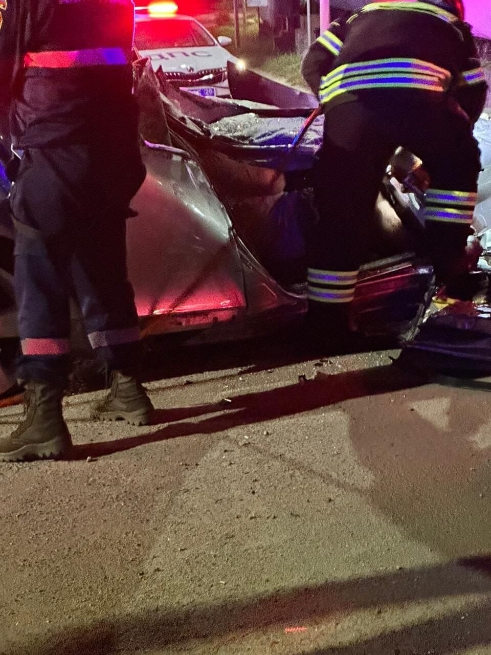 Чтобы извлечь погибших из покореженного автомобиля на место прибыли спасатели.