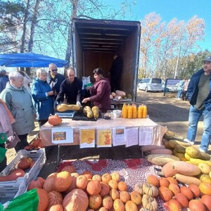 А главной фотозоной были, конечно, тыквенные развалы. Полную машину оранжевобоких красавиц привезла семья Пиндюровых из Усть-Ивановки, на продажу было предложено 6 сортов экологически чистой продукции.