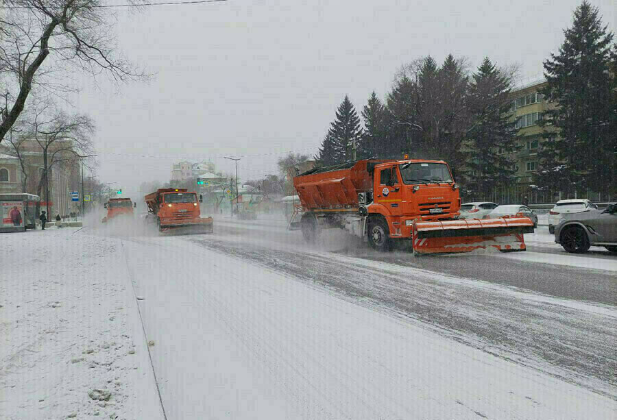 Очистка радиусов поворота и автодороги запланирована по улице 50-летия Октября от улицы Ленина до кольцевой развязки железнодорожного вокзала, а также по улице Амурской.