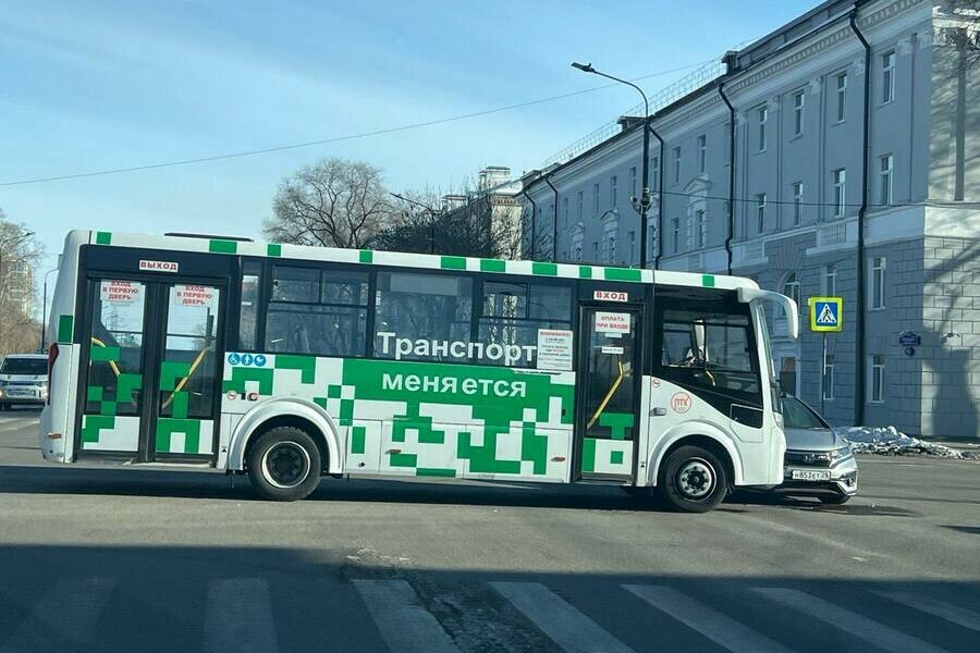 На пересечении улиц Горького и Театральной столкнулись Honda Fit с пассажирским автобусом. Последний перегородил одну сторону движения.