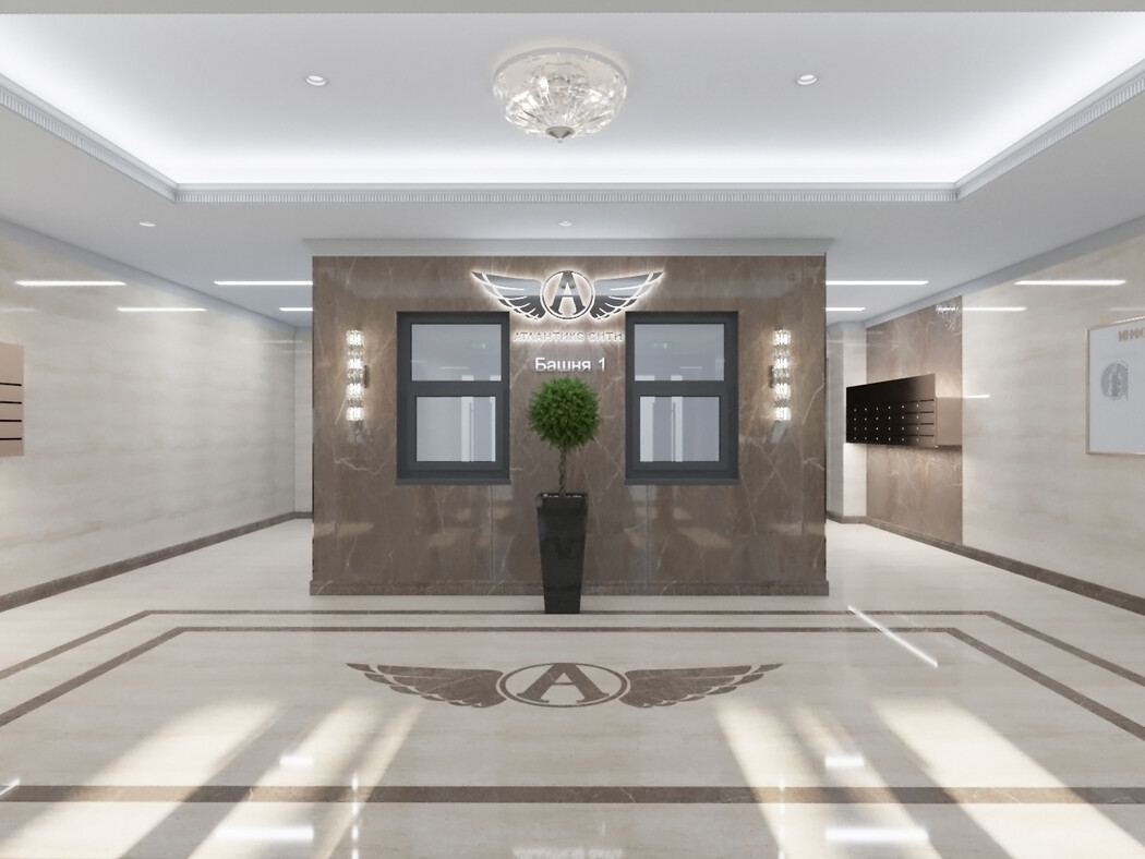 Проектировщики «Атлантикс Сити» позаботились о том, чтобы даже за пределами квартиры жильцов окружала атмосфера комфорта. Просторные, светлые лобби, выполненные в неоклассическом стиле, сразу создают ощущение роскоши и изысканности. Они не просто функциональны, но и эстетически привлекательны, что подчеркнет высокое положение жильцов и их гостей.