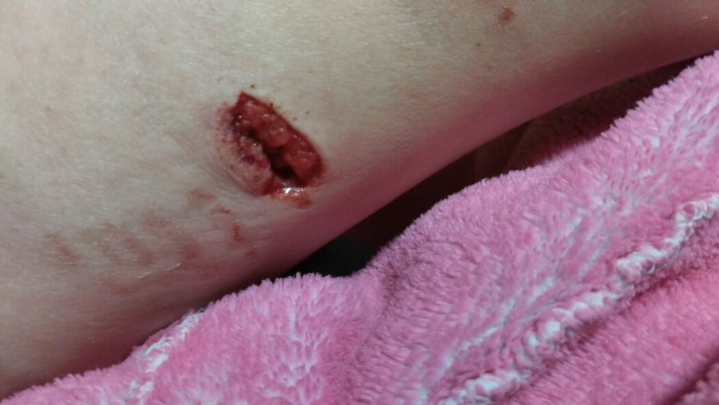Покусанного окровавленного ребенка привели домой. Под одеждой оказались страшные раны. Самая глубокая зияет на бедре – если бы пес прокусил артерию, ребенок мог погибнуть от кровопотери.