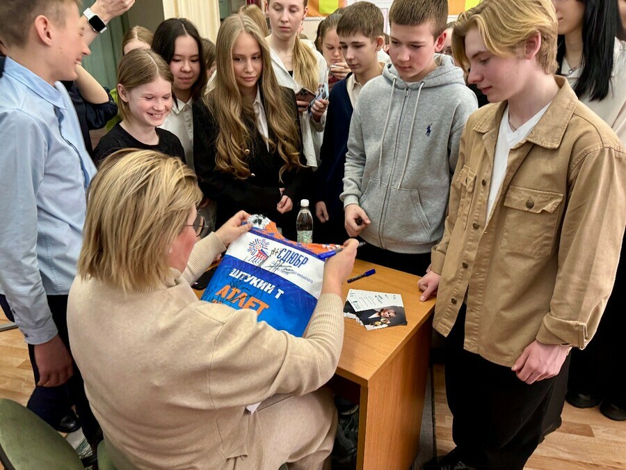 Школьники получили возможность пообщаться с живой легендой российских лыж, взять автограф и сделать памятный снимок.