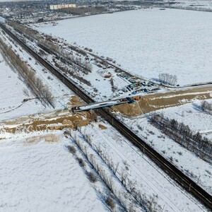 Ранее был успешно завершен важнейший этап строительства – надвижка пролетного строения и установка его на опорные части. После этих работ был предусмотрен технологический перерыв.