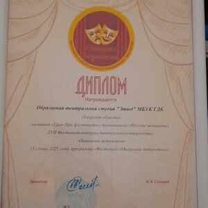 Во всероссийском детском центре «Океан» завершился XVII фестиваль детского театрального творчества «Океанские подмостки». С одного из крупнейших детских и юношеских театральных конкурсов Дальнего Востока образцовая театральная студия «Этюд» Городского дома культуры привезла гран-при.