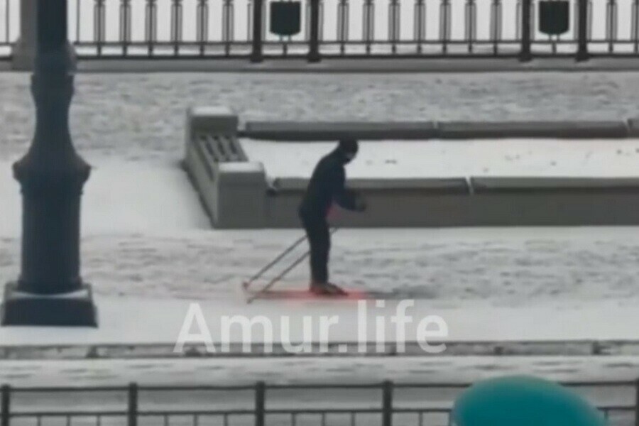 Непогода в областном центре доставила проблем автомобилистам, а вот некоторые нашли пользу. Лыжника, заметили на набережной Амура.