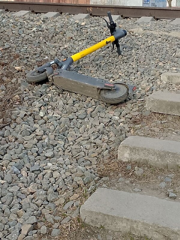Один брошенный самокат заметили даже в районе ж/д путей.