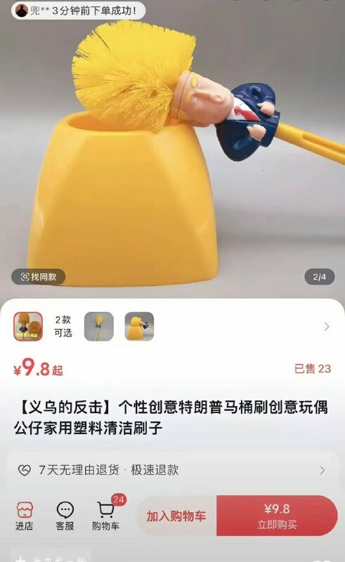 В Китае массово раскупают туалетные ершики с изображением Трампа информируют некоторые телеграм-каналы. В частности, об этом сообщает ТГ-канал Амур-Китай.
