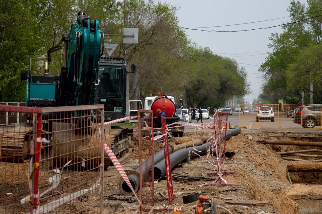 Также на участке от Калинина до Комсомольской модернизируют водопроводную сеть. Разрабатывают котлован, монтируют колодцы, трубы. Работы выполнены больше чем на 40 %. Завершить все планируют к 31 июля.