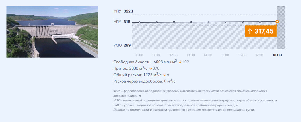 Судя по данным на сайте «РусГидро», на ГЭС продолжает прибывать воды и скоро там начнется сброс.