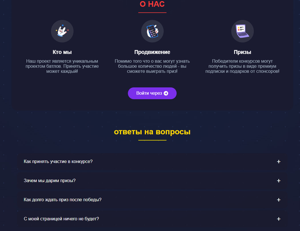 Ссылка ведет на сайт, где пользователей уверяют, что с их страницей ничего не будет, так как «вся информация передается по защищенному HTTPS протоколу и не передается третьим лицам», а также объясняется, что это некий проект батлов или конкурс изображений, за победу в котором выдают призы.