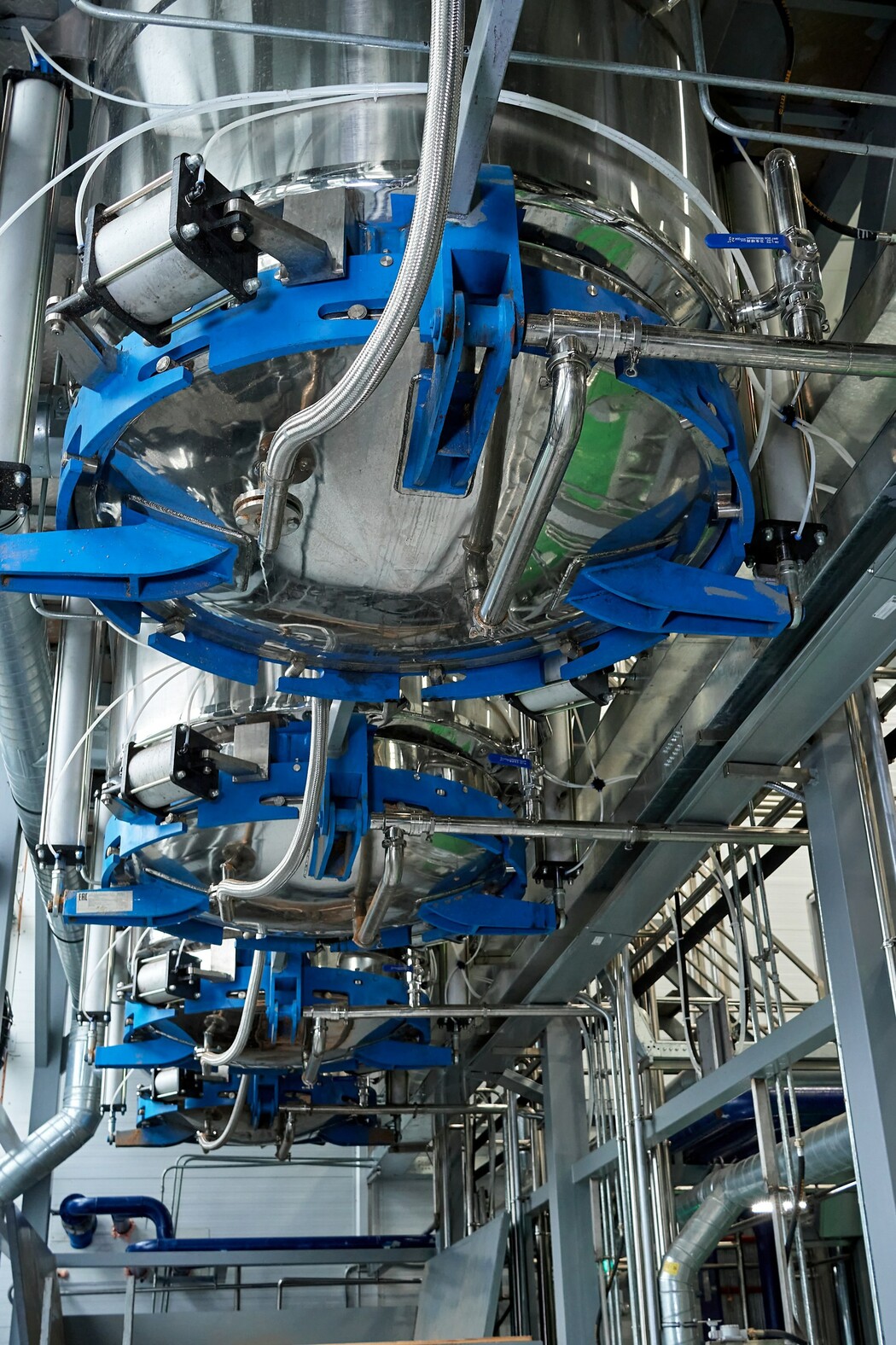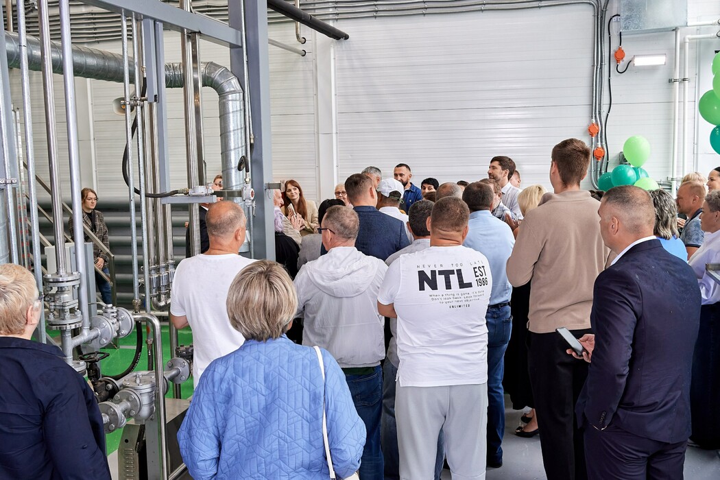 Новое производство выглядит величественно. Огромное помещение, которое вмещает в себя шесть реакторов, в которых и происходит смешивание древесины и этилового спирта. Здесь специалисты активно проводят работы и на выходе получают необходимое сырье.