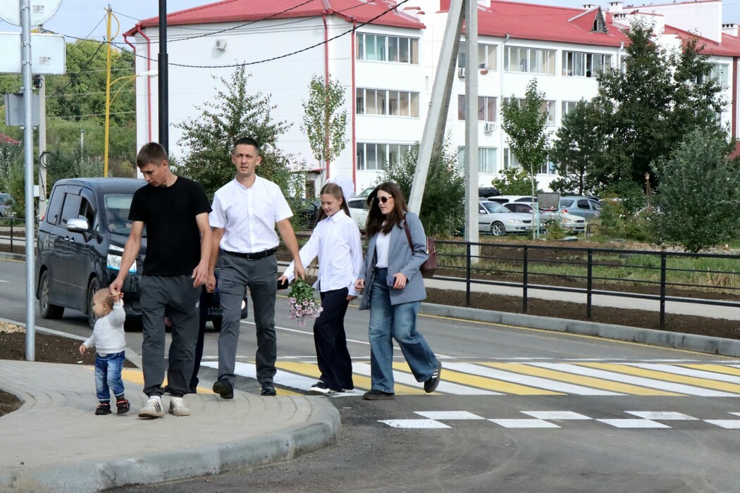 «Чтобы успеть к началу учебного года, мы организовали работу в две смены. Выполнили подготовку основания, устроили двухслойное асфальтобетонное покрытие, два пешеходных перехода, четыре автобусных остановки, современное уличное освещение и перильное ограждение. Также рядом со школой организована парковочная зона на 24 машиноместа», – рассказал начальник участка подрядной организации Владимир Нигей.