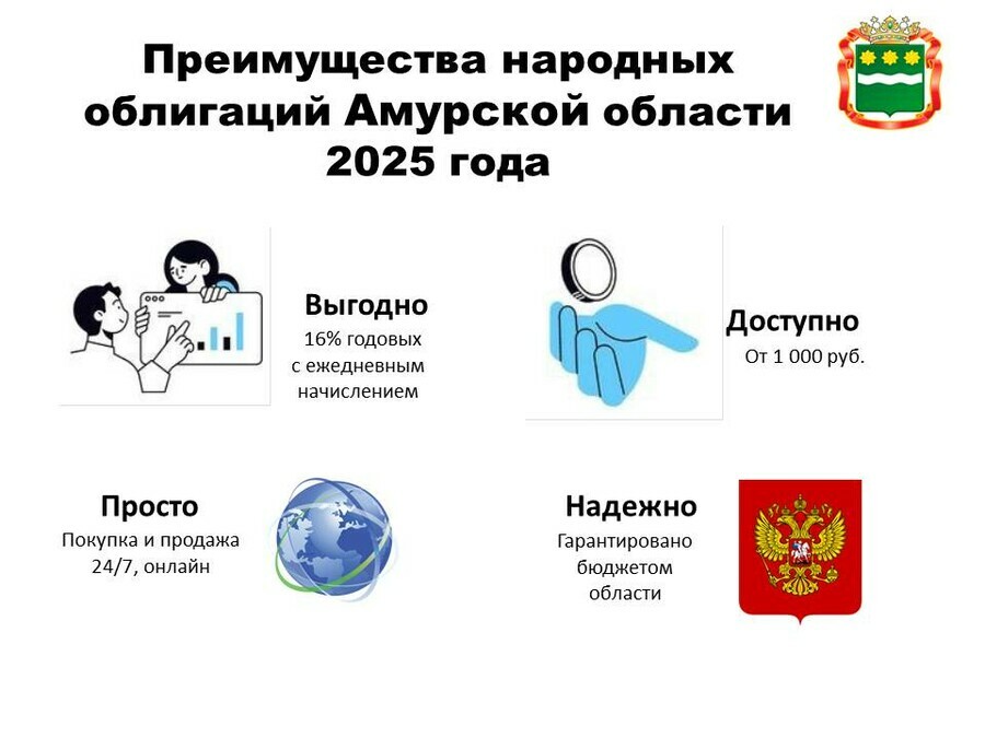 Ранее в министерстве объяснили амурчанам, что народные облигации – это надежный, понятный и простой способ сохранить и приумножить средства. Главное – разбираться в фактах, а не в мифах. Поэтому ведомство пояснило суть этого вида финансовых сбережений.