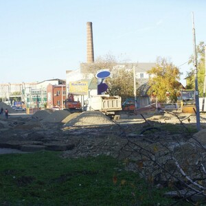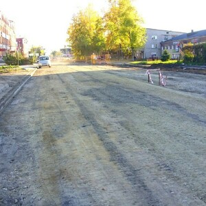 Ближе к Заводской установлен новый бордюрный камень. Идет устройство щебеночной подушки под укладку асфальта.