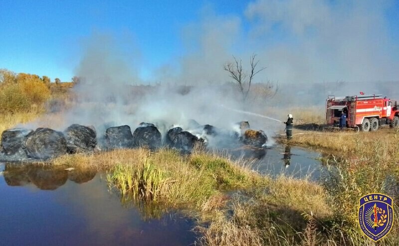 Дежурный караул ПЧ-43 прибыл на место в 10:37. Сено, горящее открытым пламенем, выгрузили в воду. В 11:40 открытое горение было ликвидировано, началась проливка.