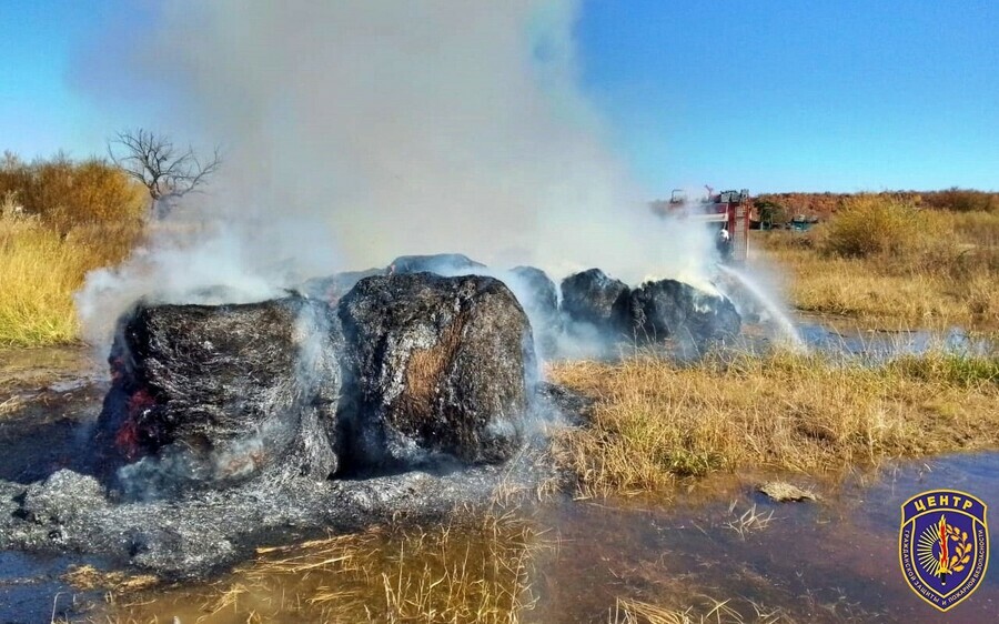 Утром 29 сентября в селе Каховка Ромненского округа в прицепе, который буксировал трактор МТЗ, загорелось сено – всего 18 рулонов. Огонь очень быстро охватил легковоспламеняющийся груз.