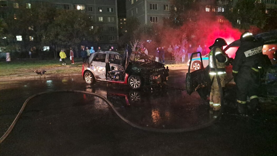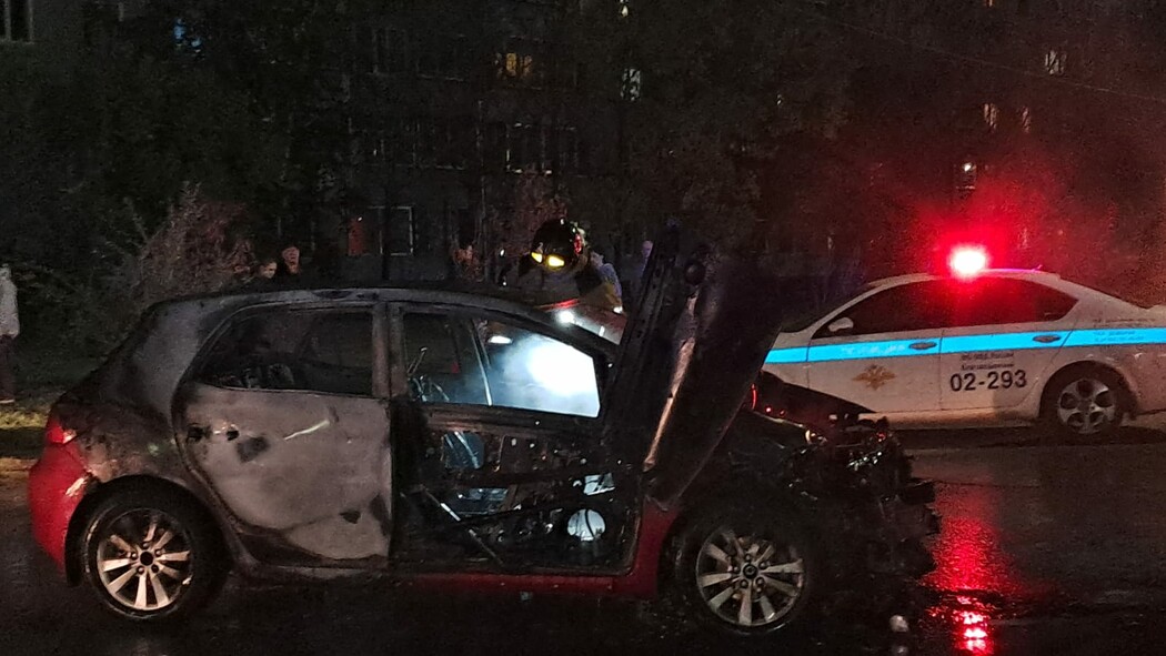 По словам очевидцев, одна машина выезжала из двора вторая ехала прямо. После столкновения одна машина загорелась, с нее пламя перекинулось на вторую. Оттуда успели выйти люди, в машине был маленький ребенок. Что с людьми из другой машины, неизвестно.