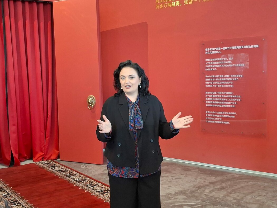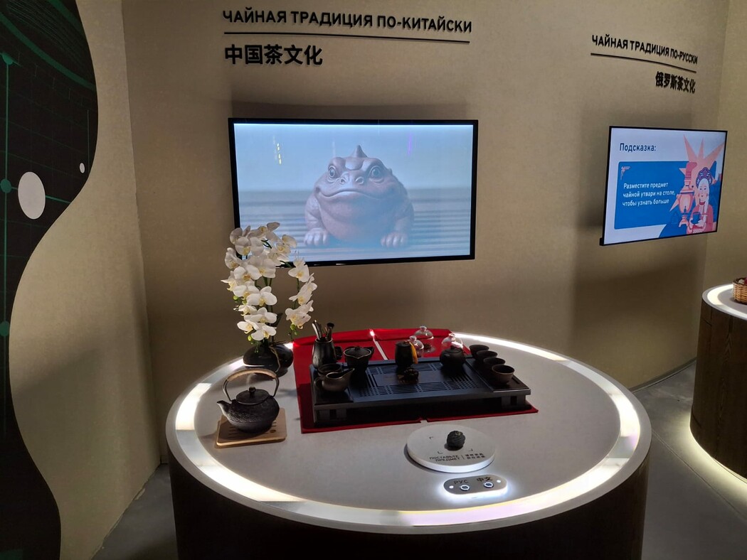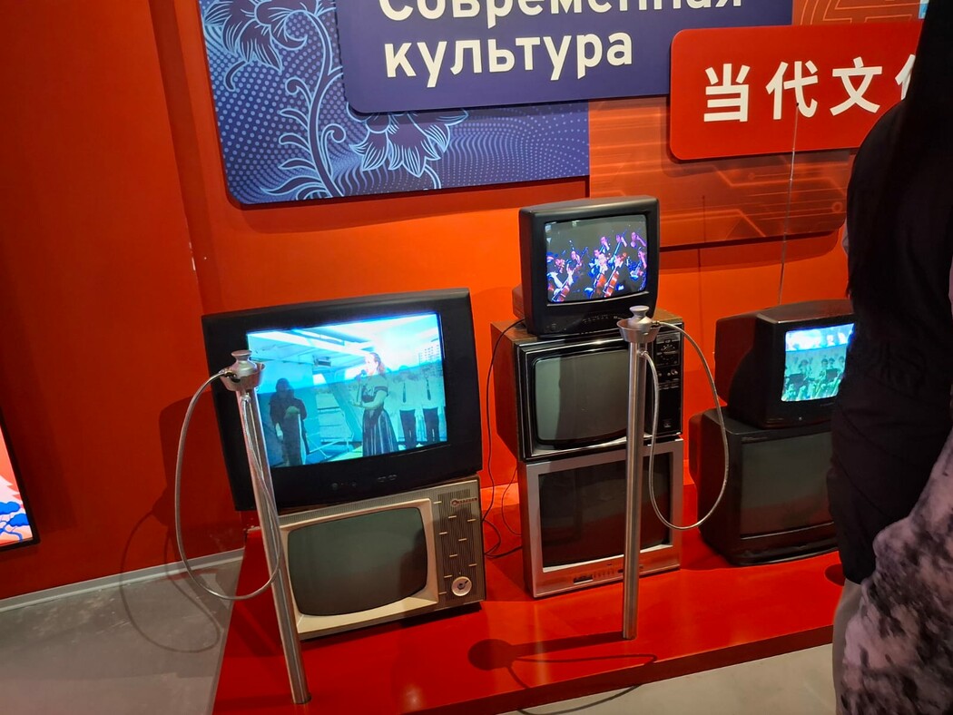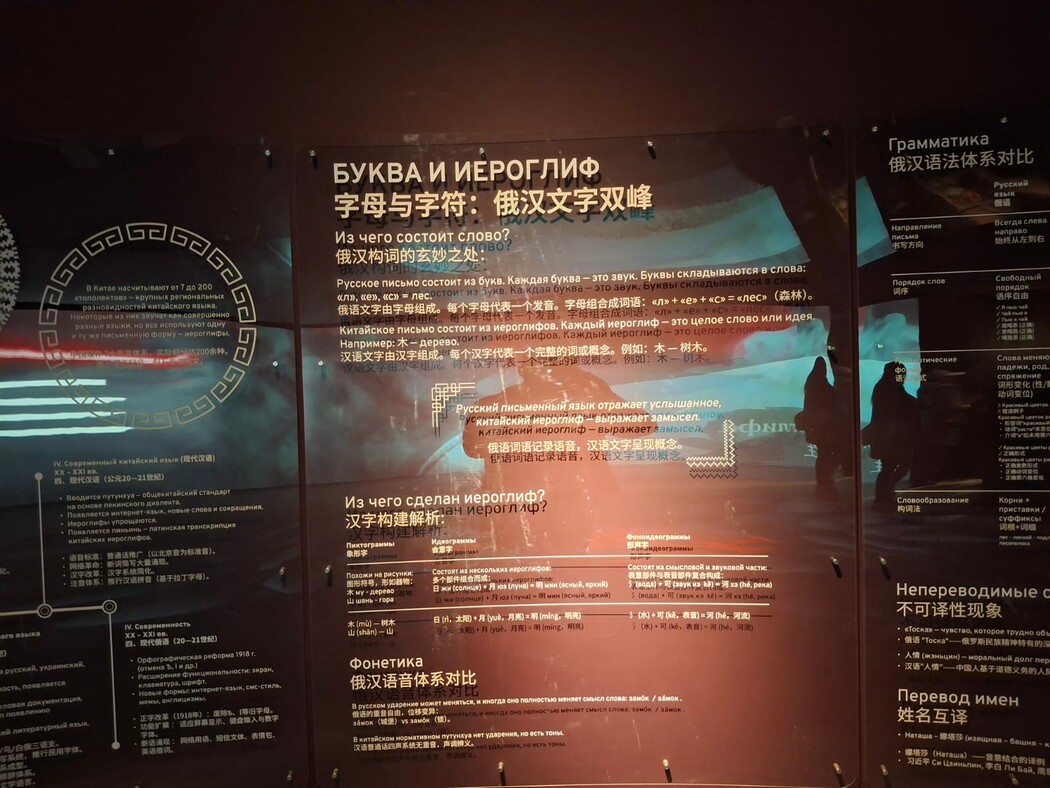 Далее гости отправились на экскурсии по залам. В первом зале русского и китайского языков участников сразу погрузили буквально внутрь видеоролика об отношениях двух стран.