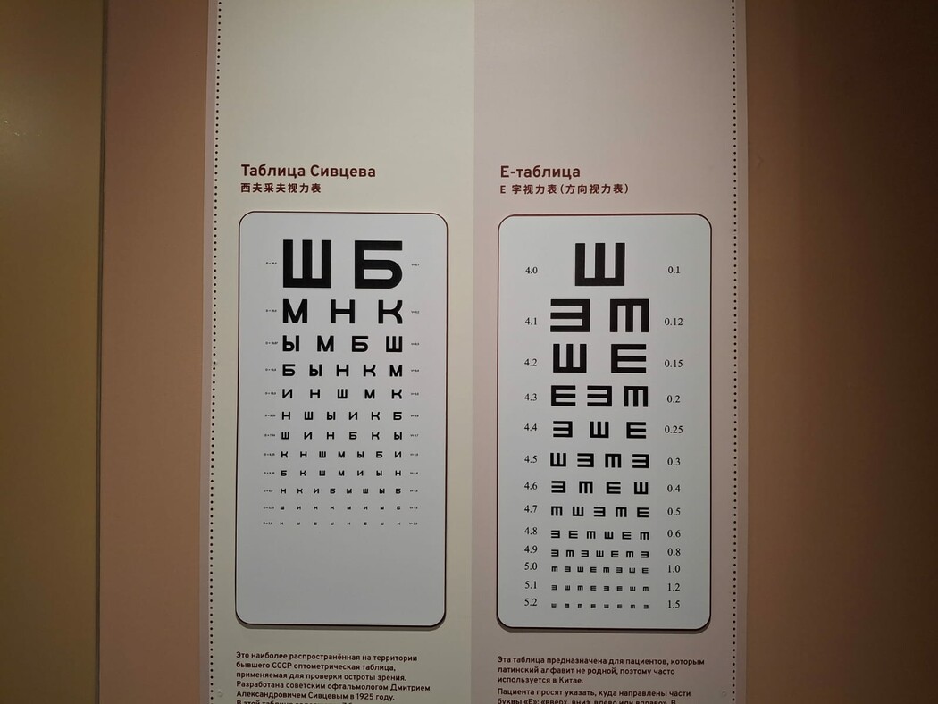«Меня как очкарика с детства заинтересовала таблицы для определения остроты зрения, - рассказал Павел Александрович. - Интересно, что в Китае такие таблицы не с иероглифами, а с буквой, похожей на Ш, и нужно отвечать, куда она направлена - вверх, вниз, влево или вправо».