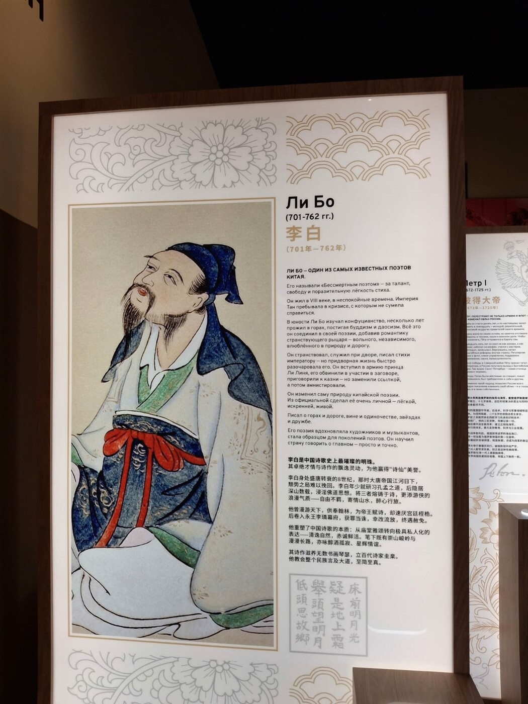 Кроме того, в новом пространстве гостям расскажут о великих людях России и Китая. Так, китайский поэт Ли Бо – для китайцев он как для нас Пушкин – соседствует с российским ученым Дмитрием Менделеевым, здесь же можно прочитать о Конфуции, Сергии Радонежском и других выдающихся деятелях.