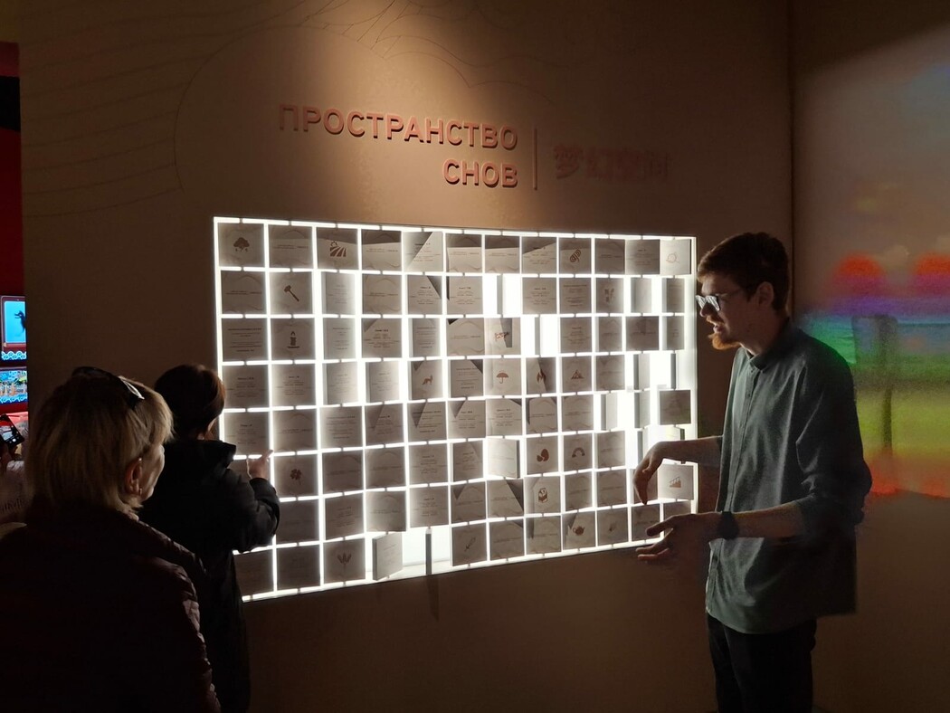 У стенда, посвященного интерпретации сновидений, гости могли узнать о толковании снов в России и Китае, а у стенда, посвященного культуре двух стран, - о культовых картинах, театральных постановках, личностях и персонажах, а также о совместных проектах, например, фильме «Красный шелк».