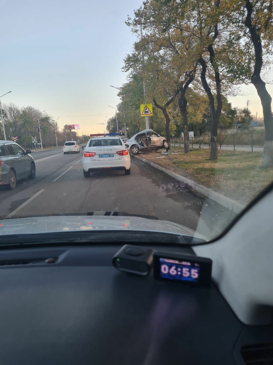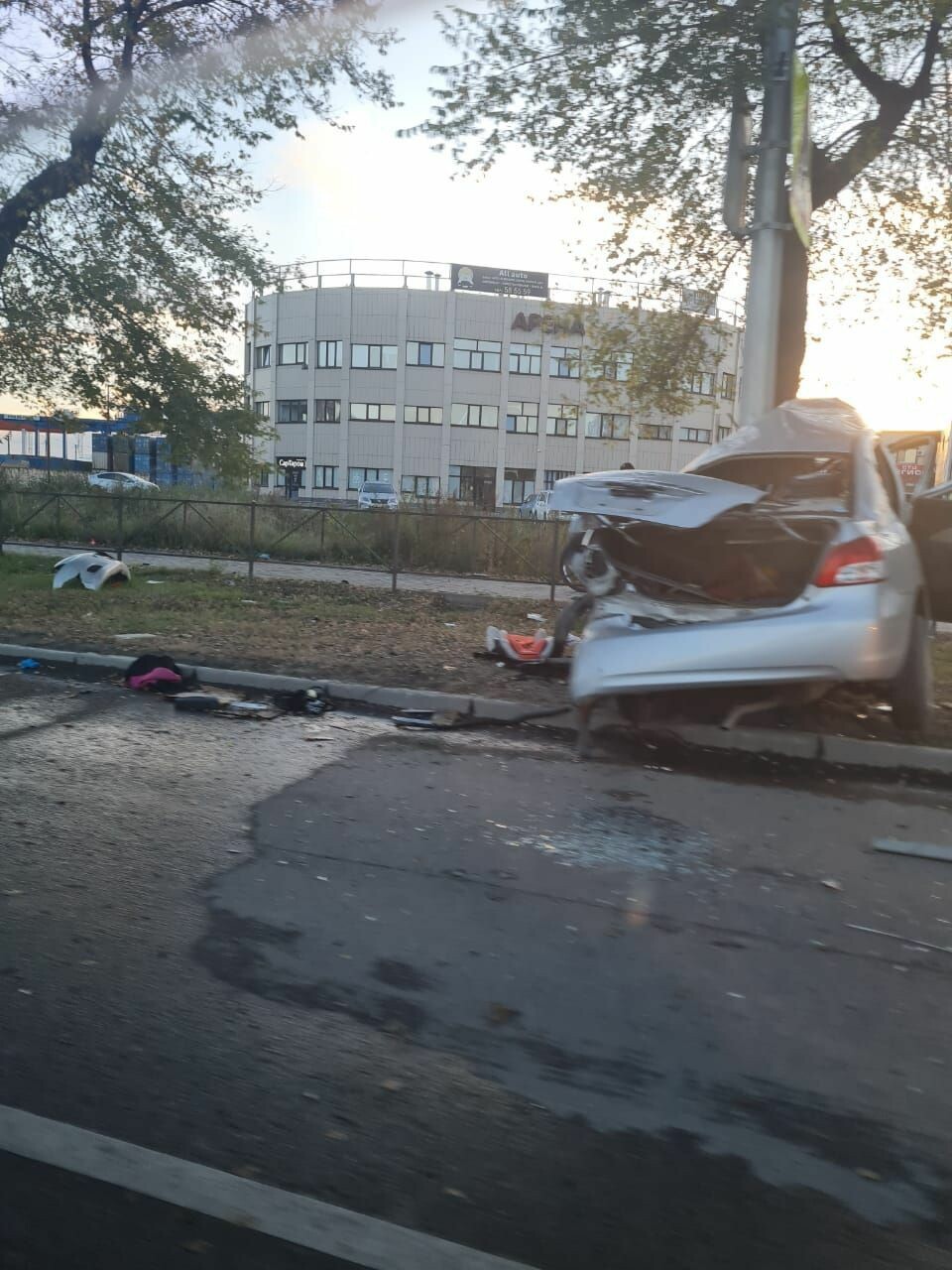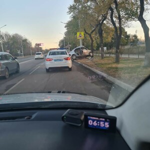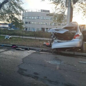 На кадрах, опубликованных с места ДТП видно, что авто буквально обняло столб.