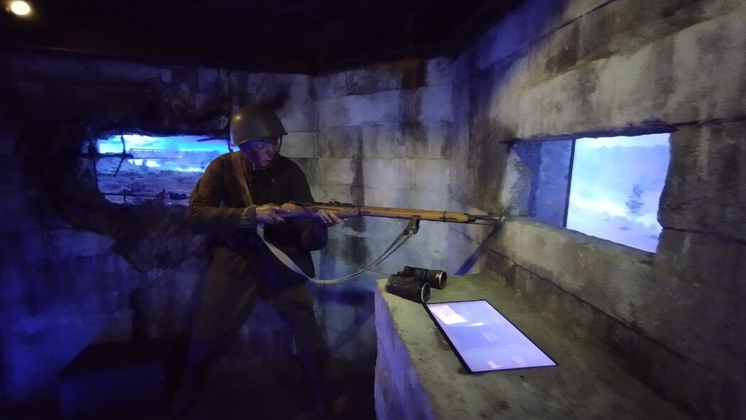 Дополненная реальность, объемный звук и реалистичные фигуры буквально погружают посетителей в атмосферу военных лет. В экспозиции также представлены подлинные артефакты, военная техника и интерактивные инсталляции.