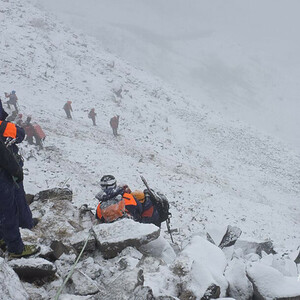 Вертолет к 18 часам долетел до площадки на отметке 1500 метров и высадил там группу спасателей и медиков. Приземлиться возможности не было, поэтому им пришлось прыгать в снег. Медики в ночь остались ждать на гребне, а спасатели отправились выше.