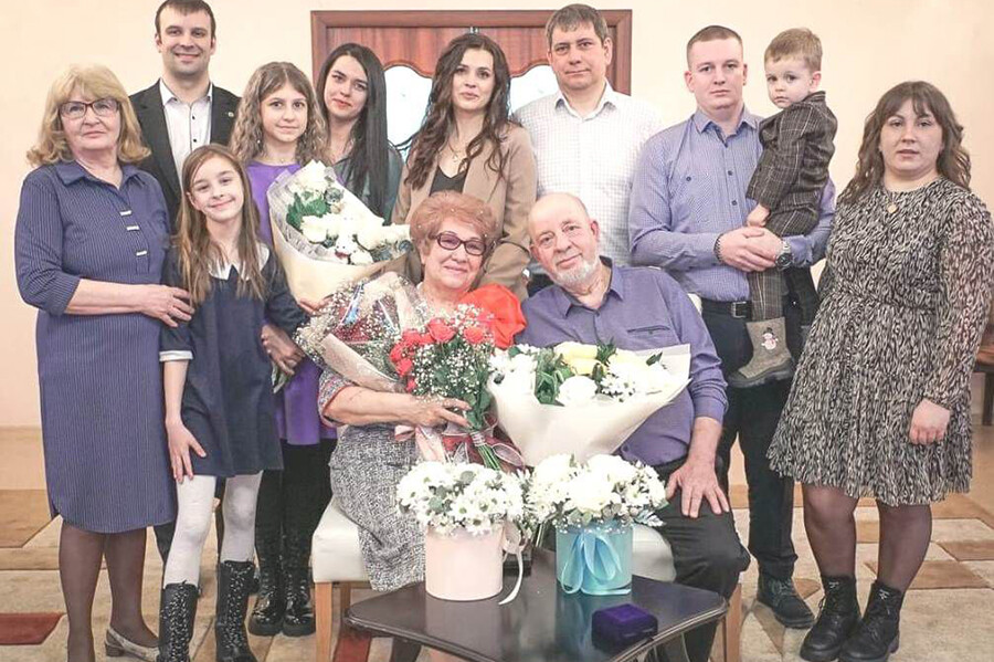 «Для нашей семьи 2024 год был особенно значимым. 2 февраля мы отпраздновали золотую свадьбу – 50 лет совместной жизни. Мы с мужем были так взволнованы и счастливы, как в тот же день 50 лет назад. Дети и внуки были растроганы до слез. Танец молодых (очень взрослых!), обмен кольцами, поздравления… Как же это было красиво, здорово, впечатления незабываемые! Хочется сказать: "Молодежь, всем советуем и желаем дожить до золотой свадьбы и прочувствовать эти эмоции". Оглядываясь на так быстро пролетевшие годы (быстро, наверное, потому что счастливо), понимаем, что все было не зря: взрослеют внуки, подрастает правнук. Это значит, что жизнь и род Медведевых продолжается. А это и есть настоящее счастье», – делится Наталья Болеславовна.
