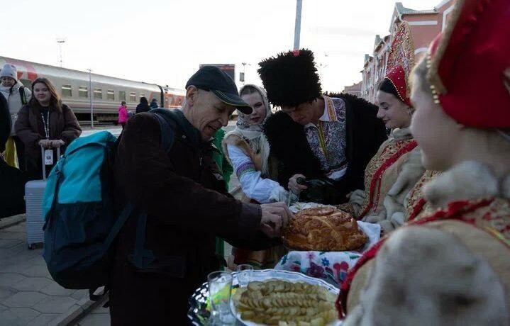 8 октября Государственный русский драматический театр им. Н.А. Бестужева приехал на гастроли в Благовещенск. Коллектив Амурского областного театра драмы, на площадке которого пройдут спектакли «бестужевцев», встретил дорогих гостей на вокзале согласно традициям – с музыкальным сопровождением оркестра ДВОКУ и караваем.