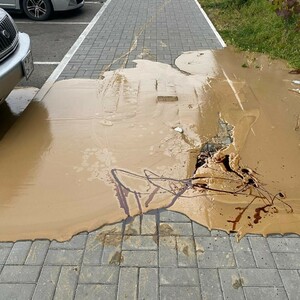 Подрядчик ООО «АКС» проводил работы по замене электрического кабеля. Во время бурения произошел разлив строительной смеси на тротуар. Дополнительно осложнила ситуацию поломка вакуумной техники, предназначенной для уборки.