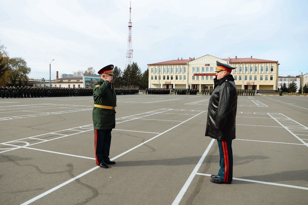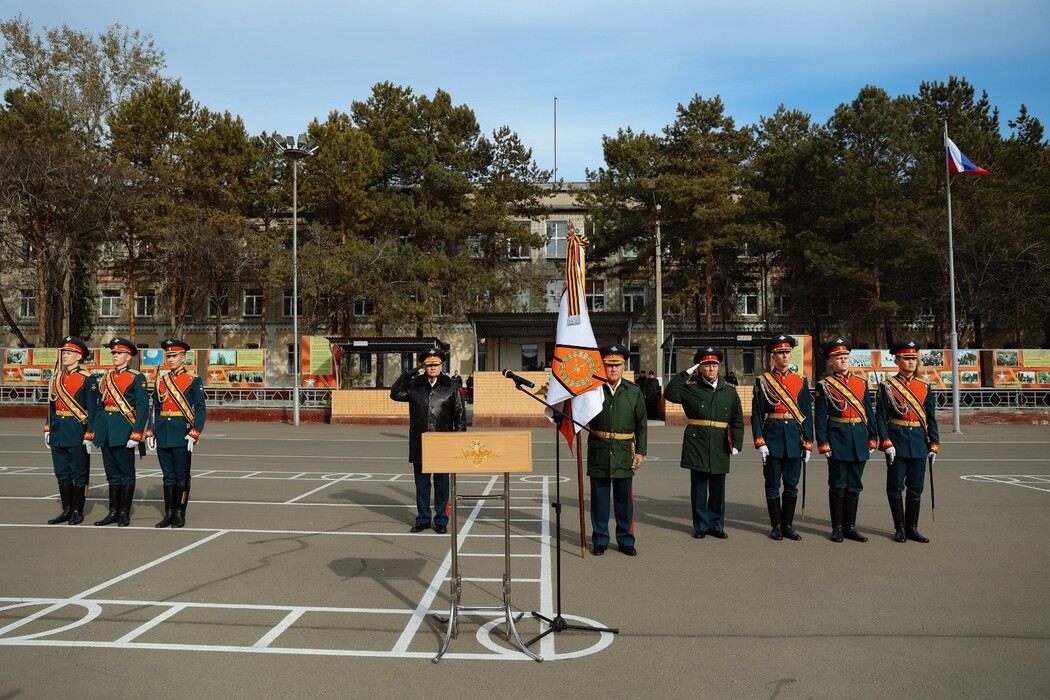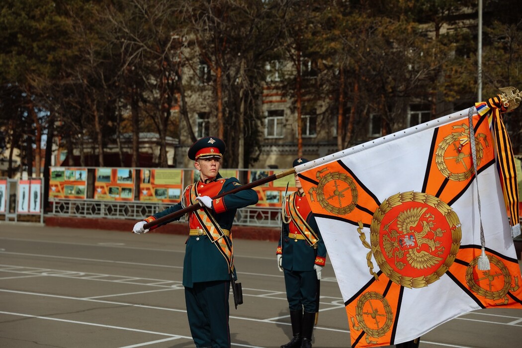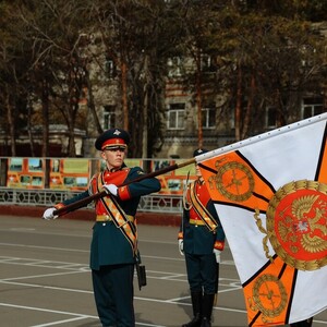 В среду, 15 октября, в ДВОКУ состоялось церемония вручения Георгиевских знаменных лент в честь присвоенного училищу почетного звания «гвардейское». Поздравить личный состав прославленного училища в Благовещенск приехал главнокомандующий Сухопутными войсками, Герой России, генерал-полковник Андрей Мордвичев.