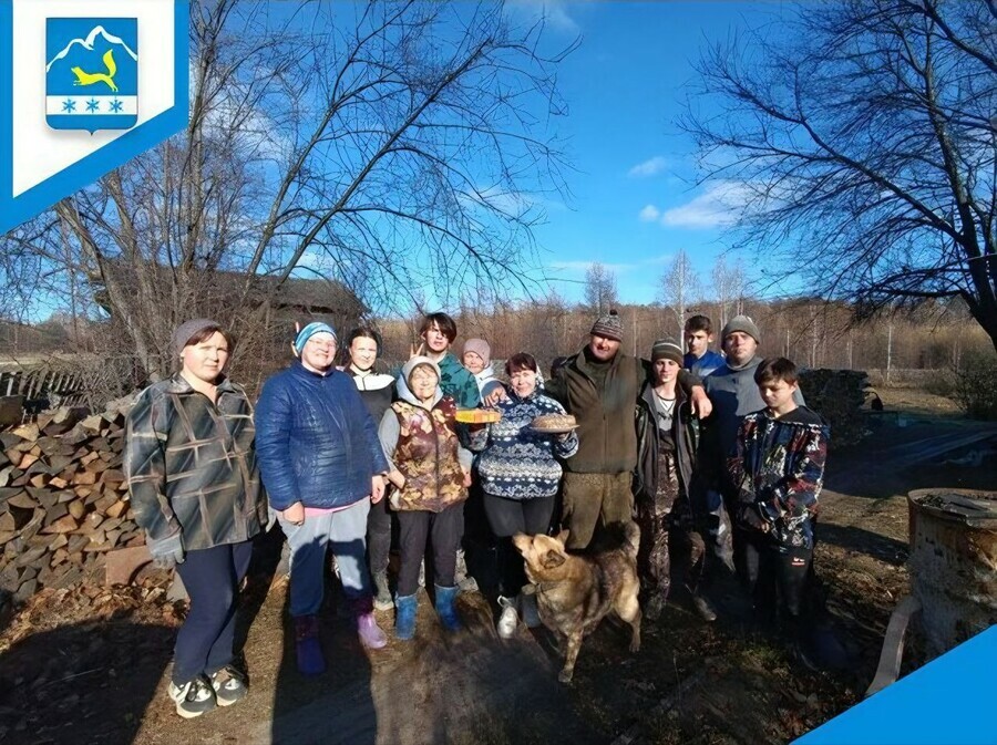После работы жители посёлка устроили небольшое чаепитие, а хозяйка всех угостила своими пирогами.