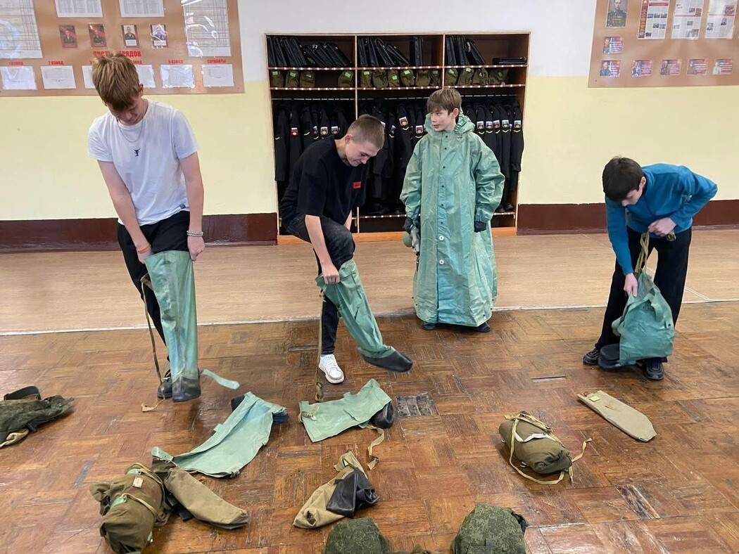 К примеру, на этой неделе ребята осваивали, как правильно и быстро надевать противогаз и общевойсковой защитный комплект.
