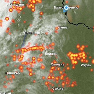 Основные очаги термоточек в Китае сосредоточены на сопредельной территории в районе Бурейского округа и Свободненского района.