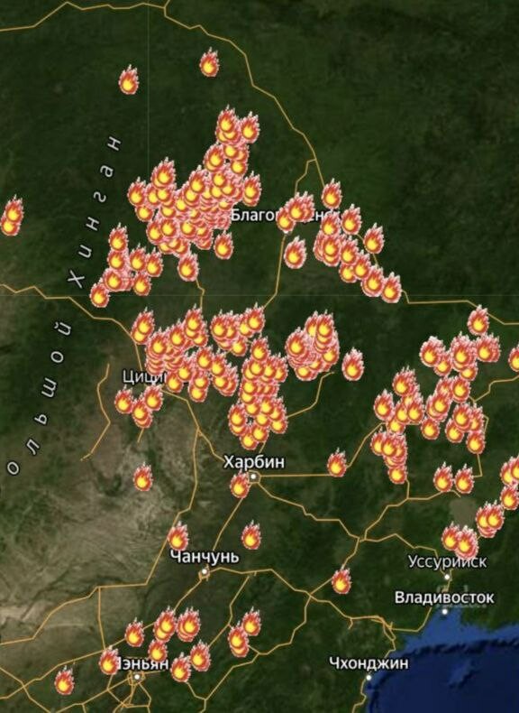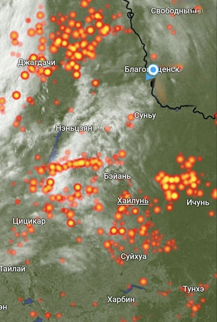 Амурскую область в очередной раз накрыло дымом из Китая. Причиной этого стало несколько сотен возгораний на сопредельной территории. Некоторые из этих очагов имеют очень большие площади горения.