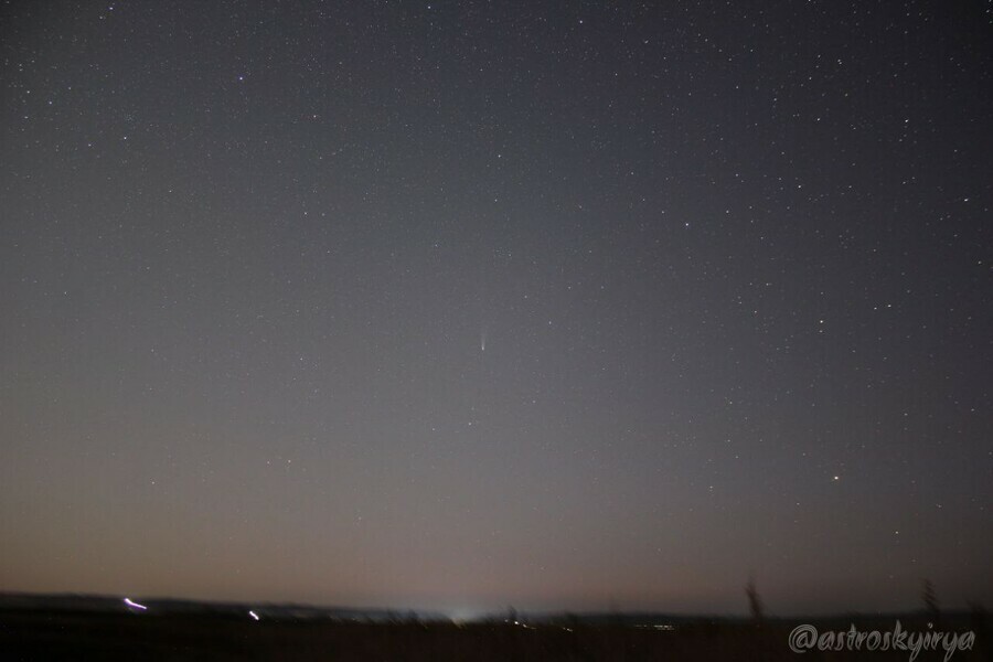 «Всё-таки стала она видна невооружённым глазом, даже при фазе Луны в 37 %. При этом была пыль и дымка по горизонту. Видна, как мутная звёздочка там, где её быть не должно», - пояснила сделанные под Благовещенском снимки автор Telegram-канала «Небо над нами», благовещенский астроном-любитель Ирина Пархомова.