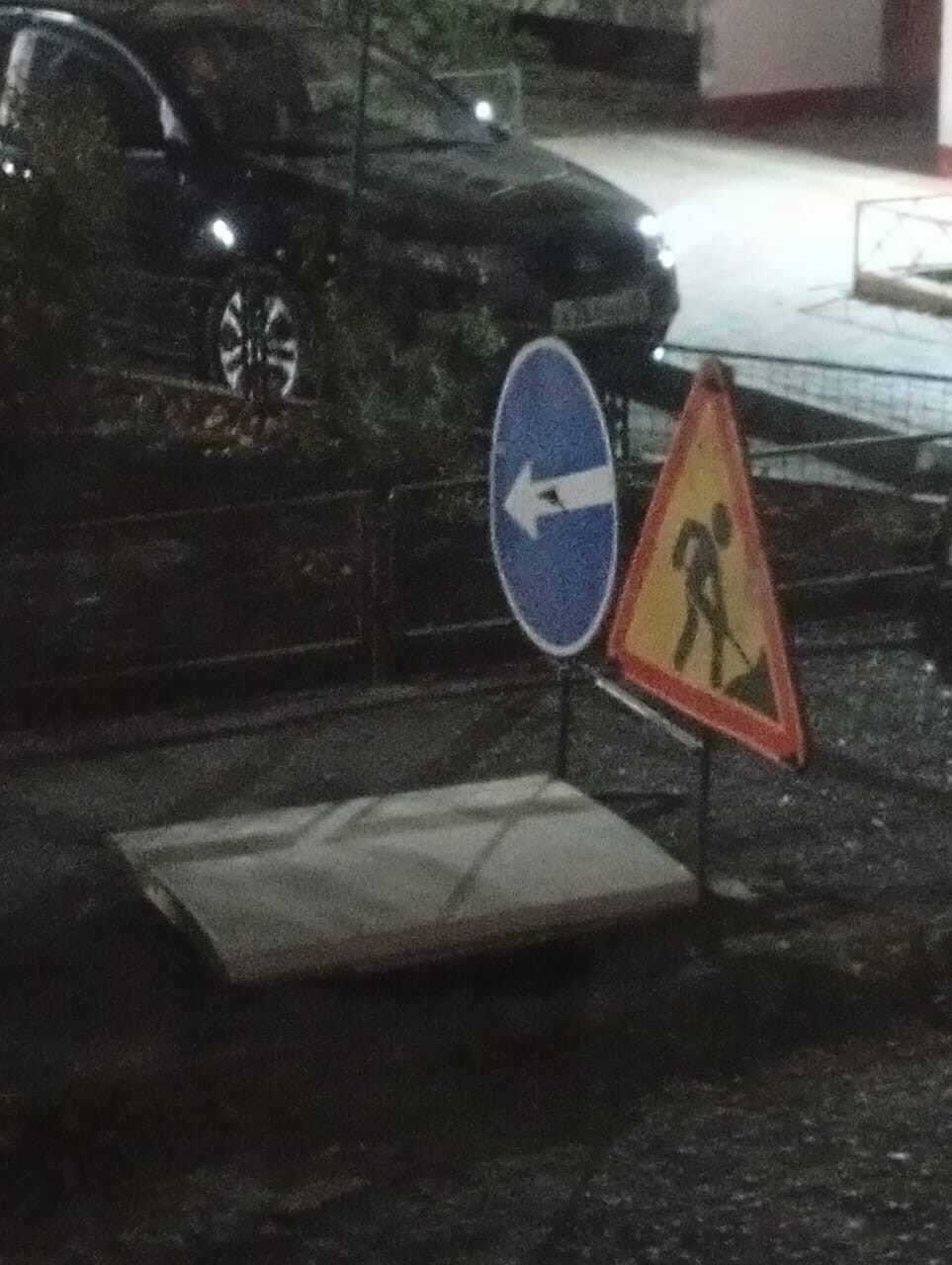 Но через несколько дней знаки куда-то исчезли. Осталась только дверца от холодильника.